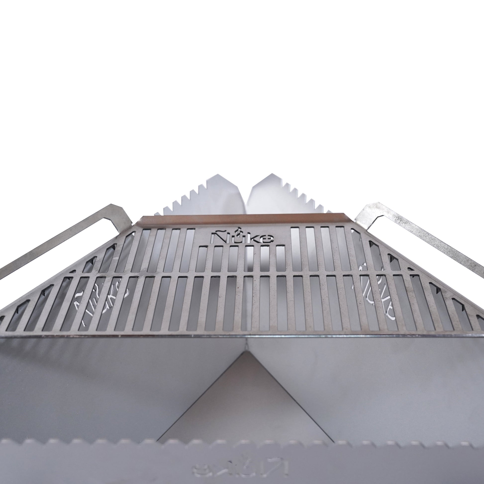 The Onix 500 is a medium sized portable fire pit grill that easily carries (Folds flat) on your shoulder using the included bag. From campsites to the beach to backyards and everywhere in between, the Onix 500 grill brings Ñuke’s signature style and quality build in an inexpensive package.