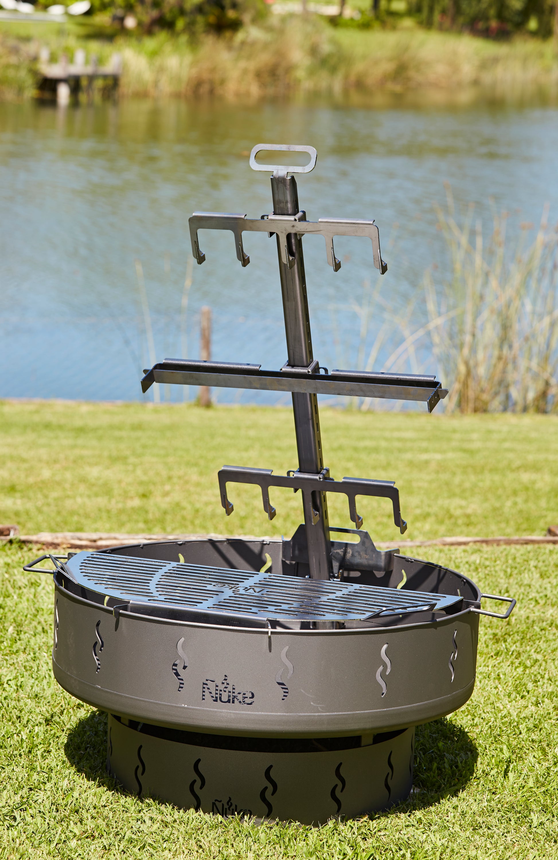 The Ñuke Patagonia firepit and grill is a campfire cooking dream. Build an open fire for family gatherings, then slow-roast meats on the available asado cross or sear burgers and steaks on the provided grill grate. Whether you are grilling or chilling, the Patagonia brings the entire family together around the open fire.